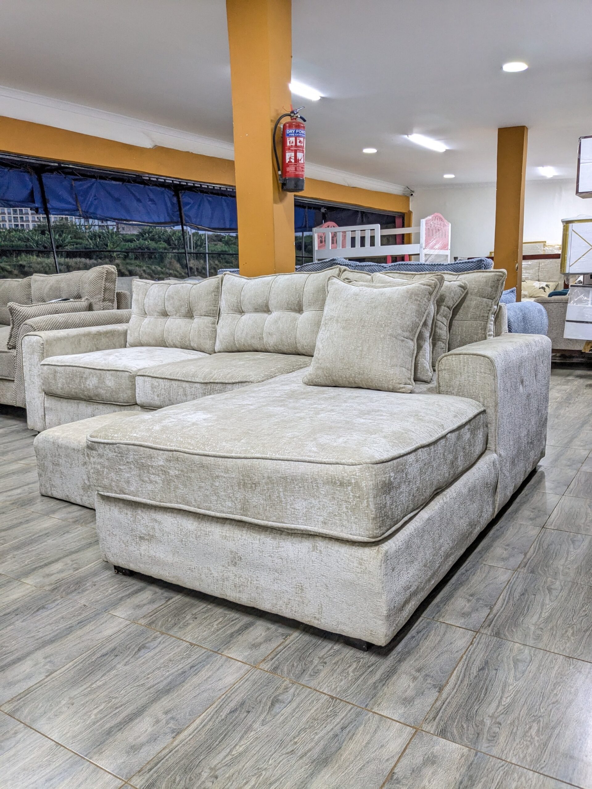 A premium corner sofa designed to maximize space and comfort. Featuring deep, supportive cushions and a sleek modern silhouette, this piece is perfect for both relaxation and entertaining guests. Its durable build and elegant finish make it a timeless centerpiece for any living room.